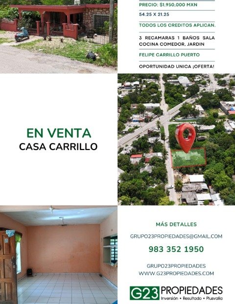 Casa en venta en Felipe Carrillo Puerto con 3 recámaras, terreno amplio y jardín, ideal para disfrutar comodidad y tranquilidad.